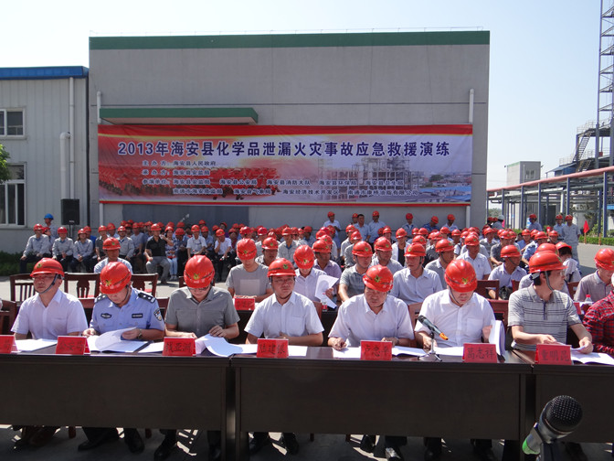 2013年8月2日上午,2013年海安縣化學(xué)品泄漏火災(zāi)事故應(yīng)急救援演練活動在我司舉行。