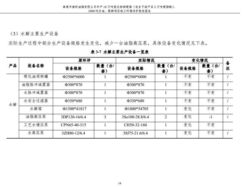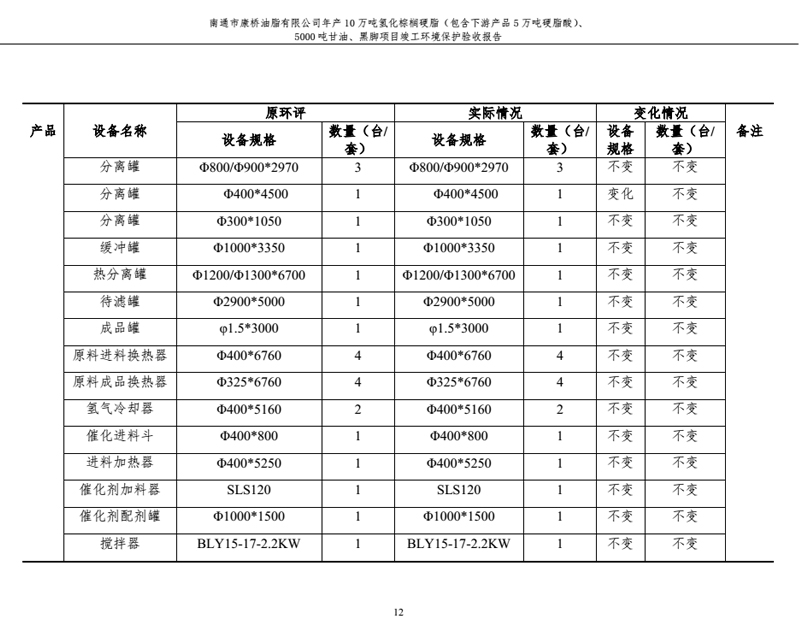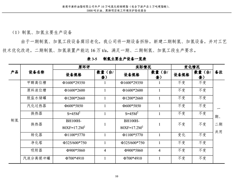康橋油脂年產10萬噸氫化棕櫚硬脂、5000噸甘油、